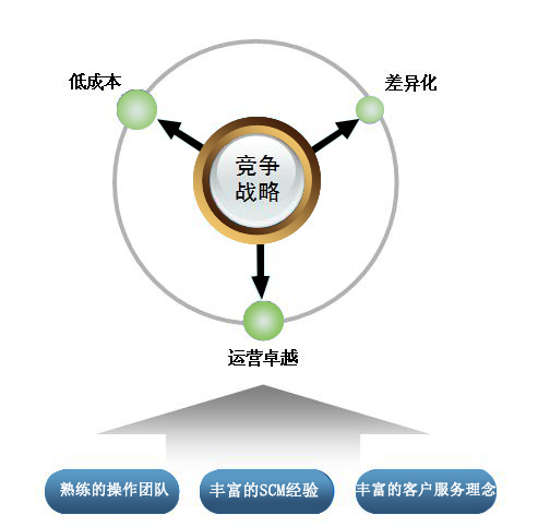 我司实施的是低成本结合运营卓越的战略来支撑公司实现自己的战略目标。我们的低成本是基于中国的宏观和微观环境, 我们运营卓越基于公司丰富的供应链管理经验,优秀的员工队伍和丰富客户服务经验。